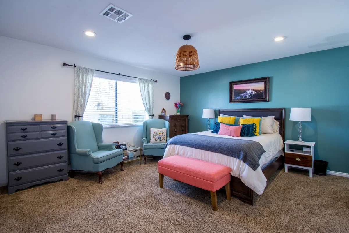 Cân chỉnh màu sơn phòng ngủ phù hợp với ánh sáng trong nhà sẽ tạo nên cảm giác rộng rãi và thông thoáng.